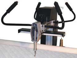 The Consew 2611BQ 26" Long Free Arm Quilting Machine features 360° Motion Control, Driven Presser Foot, Automatic Needle Up/Down, Front and Rear Adjustable Control Handless, Adjustable Speed Control, Laser Pointer, 10 foot Steel Frame, Top Handwheel and big bobbin. Applications: Free arm quilting and embroidery of light and multilayer materials Especially suitable for long and complex materials. Features: Light weight aluminum alloy construction. Miniature PLC easily adjusts the sewing speed and needle stop position. Front and rear adjustable control handles Ten foot frame with dual rail easy roller system. Adjustable fabric ratcheting tensioners for multi-ply (3) applications. Detachable laser pointer for tracing pattern. Work table for small patterns. Built-in Florescent light. Nylon wheels with sealed steel bearings. 1-1/2 inch 11ga steel poles for less bowing. Rotary thread tensioner. Oiless needle and presser bar for no oil drips. Synchronous belt drive to top and bottom shaft. Harmonic balancers on top shaft. Top mounted non-engaged hand wheel. "L" bobbin case and belt driven Koban hook assembly (Model 1709Q) ("M" size bobbin in the 2611BQ) Rear mounted thread stand. Includes light frame for mounting overhead light (light not included)